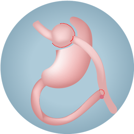 This is a less complex version of RYGB. There is only one joint between the stomach and the intestine. As a result, it is faster than RYGB but has equivalent results. From an analysis of our own data, we found that MGB/OAGB is the ideal procedure for patients with very severe obesity i.e. BMI more than 50 kg/m2.